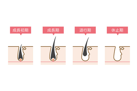 毛が生え始めてから成長して抜け落ち、また生え始めるまでの期間は、毛周期と呼ばれます。毛周期は成長期、退行期、休止期を繰り返して毛は生え変わっています。脱毛効果が出やすい期間は成長期であり、成長期以外の毛に対しては、レーザー照射してもダメージを与えることはできません。